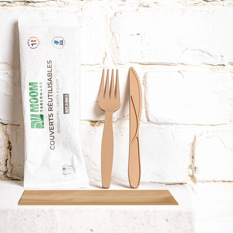 Optez pour nos kits couverts 3 en 1 (fourchette, couteau, serviette)