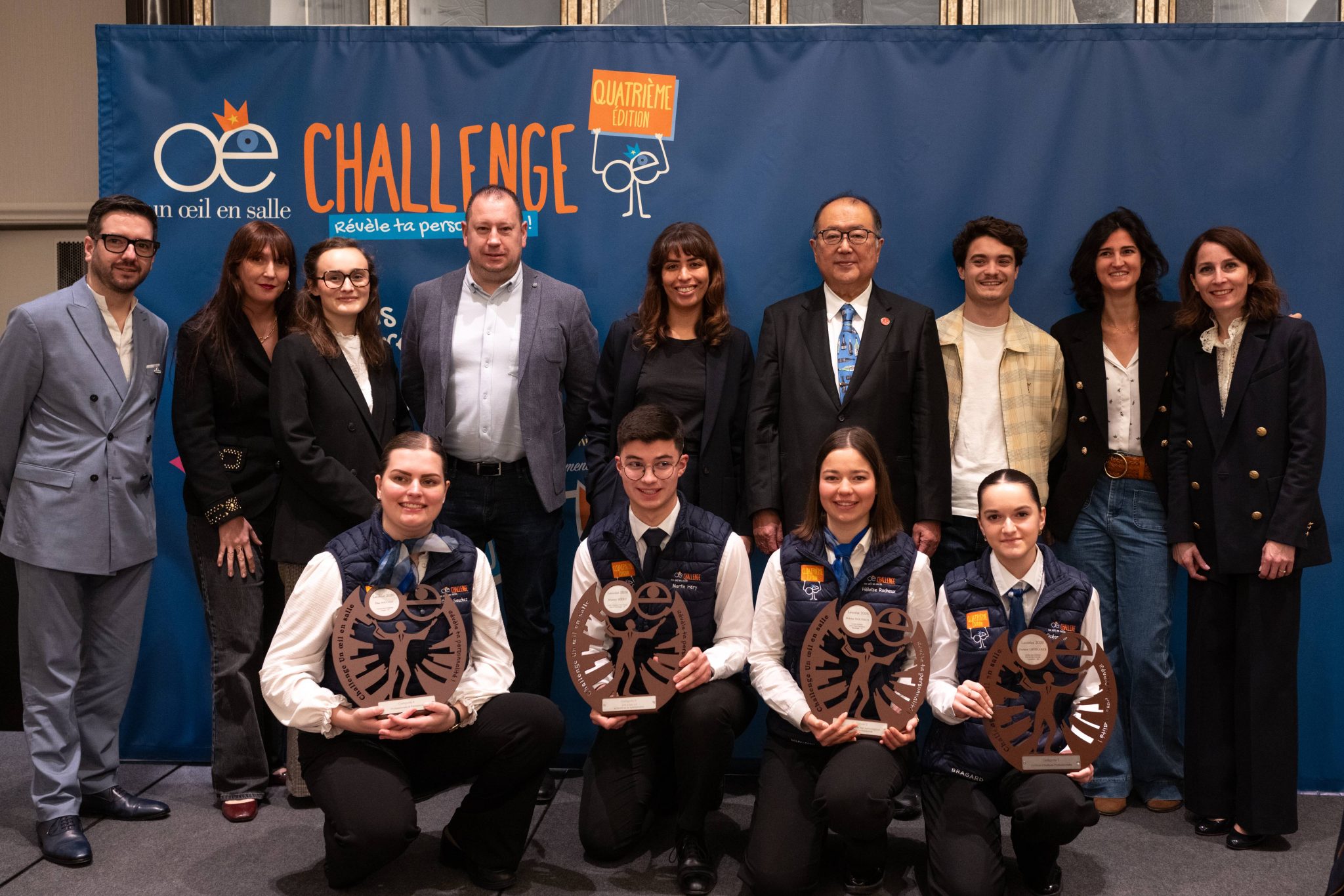 Lauréats et partenaires du Challenge “Un œil en salle” 2026 réunis au Peninsula Paris.
